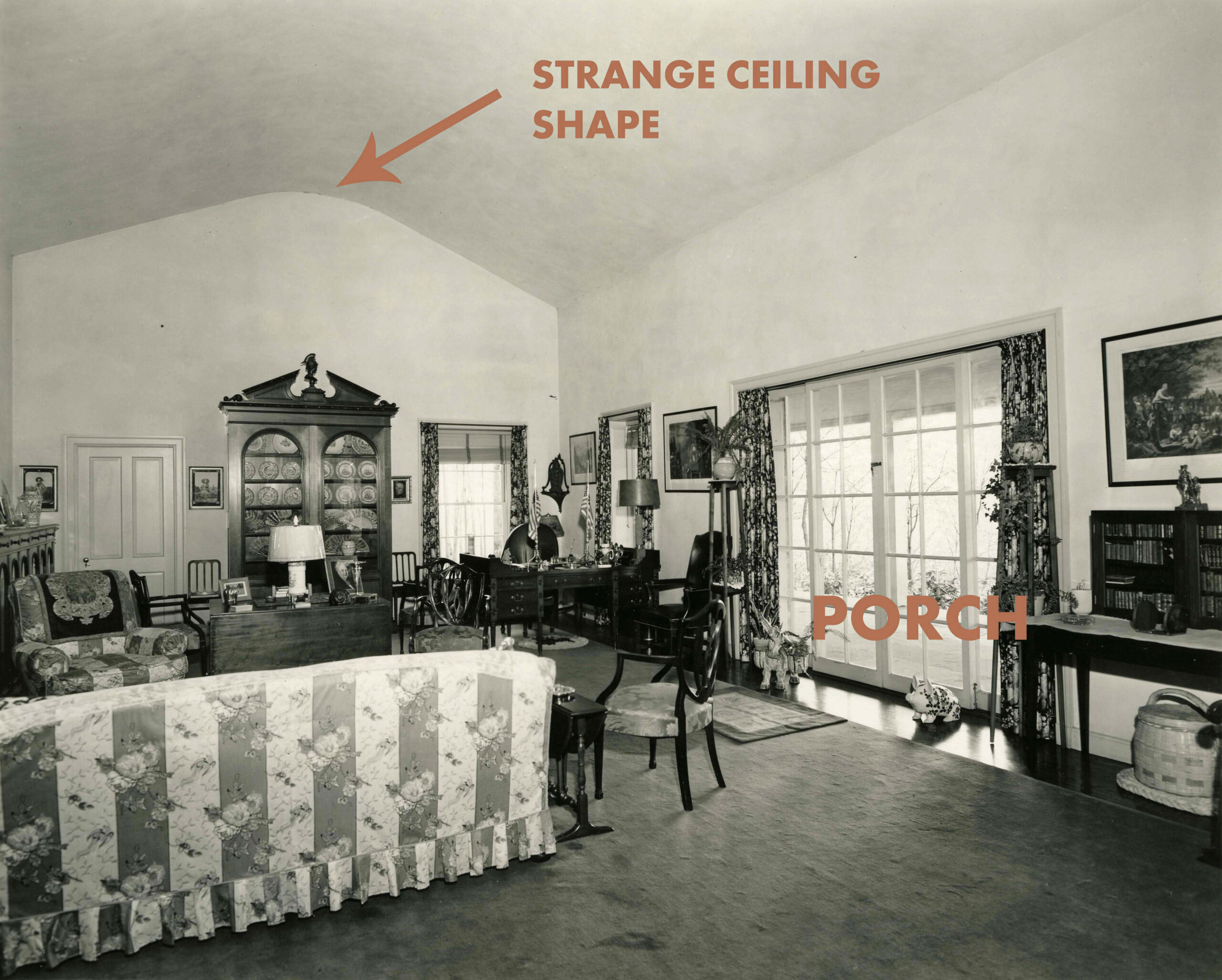 - FDR’s crew that renovated the house, hid all the hand-hewn roof trusses that are common within Dutch architecture, underneath some awkwardly placed and shaped ceilings.